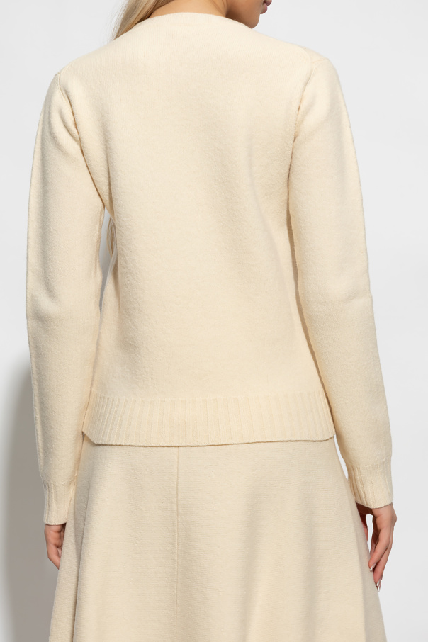 Cream sweater from Jil Sander. Made of wool, this item has ribbed trims at the crew neck, hem and cuffs.