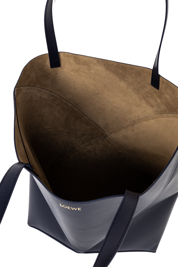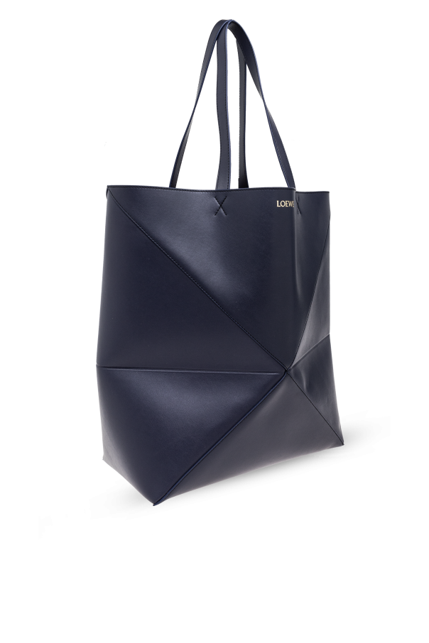 Introducing the Puzzle XL Shopper by Loewe, a testament to luxury craftsmanship and innovative design. Fashioned from premium calfskin leather, this navy tote bag dazzles with its polished surface and supple texture, embodying the essence of high-end sophistication. The Puzzle XL stands out with its distinctive, geometric pattern composed of polygonal panels intricately assembled to create a vivid, three-dimensional effect, reminiscent of a puzzle. This unique feature, paired with the bag’s solid construction and meticulously finished edges, showcases artisanal precision. Adorned discreetly with Loewe’s recognizable logo, the bag exudes exclusivity while maintaining an air of subtlety. Its long, flat handles ensure effortless shoulder wear, complementing its spacious and functional suede interior, perfect for accommodating your essentials with ease. Why Choose This Product? Luxurious calfskin leather construction for an opulent feel. Unique geometric design for standout style. Spacious suede-lined interior with a compartment for organized storage. Subtle yet recognizable designer logo for brand enthusiasts. Long handles for comfortable shoulder wear.