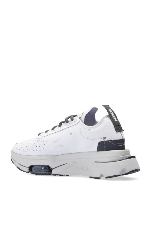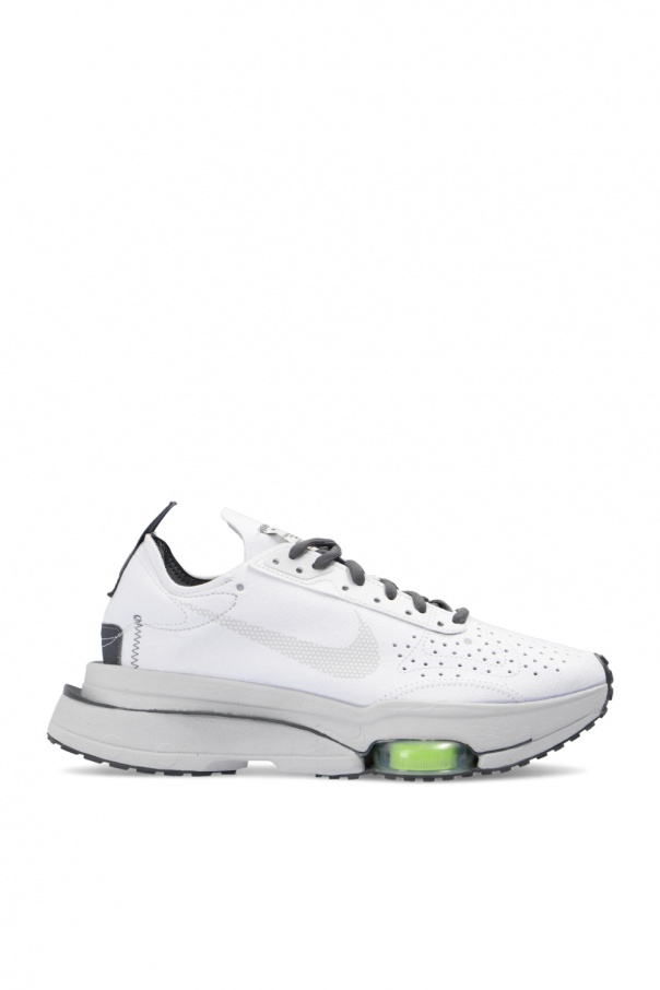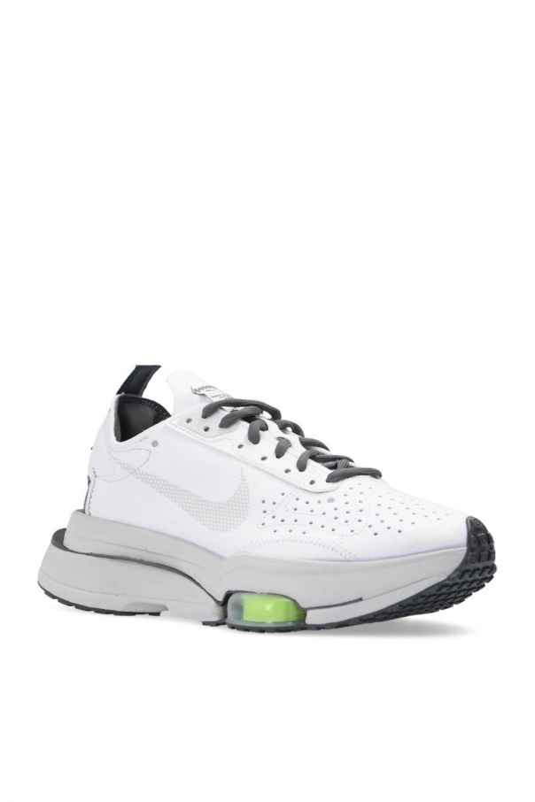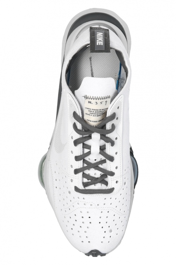 White and grey ‘Air Zoom Type’ sneakers from Nike. Set on a grey rubber sole, this lace-up design is enriched by a suede upper, a grey swoosh logo, decorative elements in light green, a white patch and a grey and white logo print. This model is part of the N.354 line, which re-invents sole construction. The model is complete with Zoom Air pods, which ensure supreme cushioning, and targeted perforation for breathability.