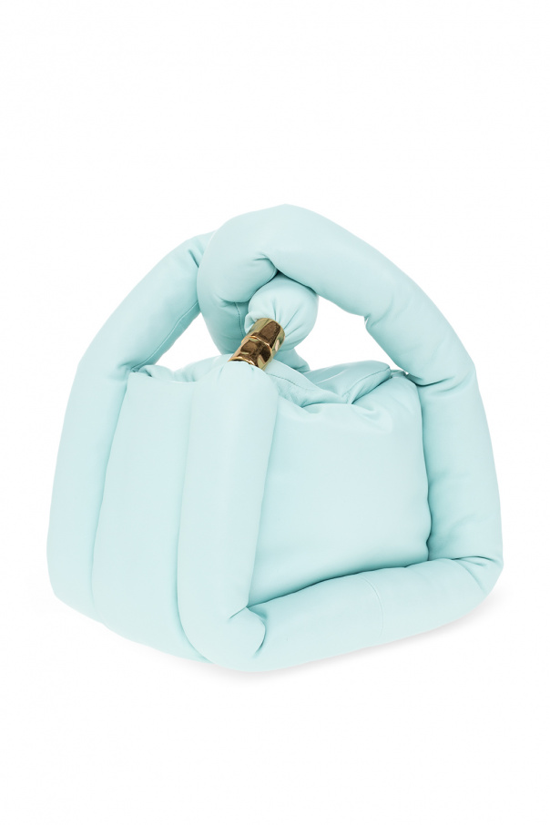 Blueish green ‘Wonton 20 Balloon’ handbag from Boyy. Made of lamb leather, this design features a fold-over flap and magnetic snaps, gold-tone metal rings, two half-round handles, a detachable shoulder strap, gold-tone metal hardware and one internal compartment.