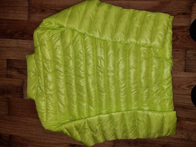 Нова, дуже яскрава, тепла курточка, на холодну осінь, камера не передає колір ( дуже гарний). Розмір S-M.