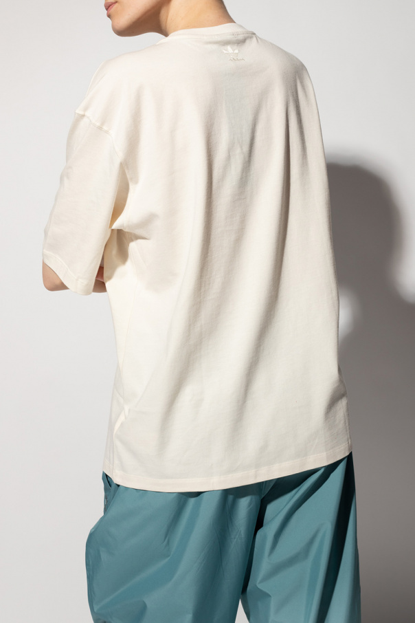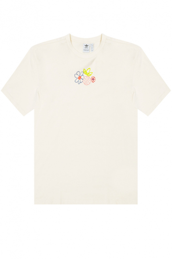 Beige crewneck T-shirt from ADIDAS Originals. Made of cotton, this garment is decorated with a printed multicolored logo pattern.