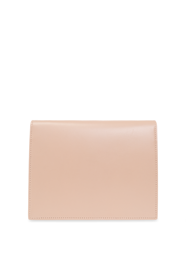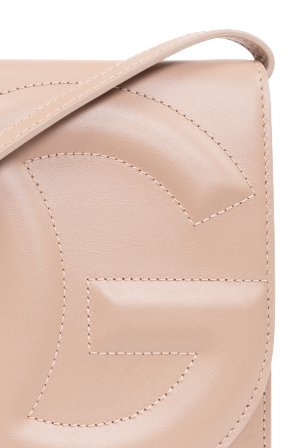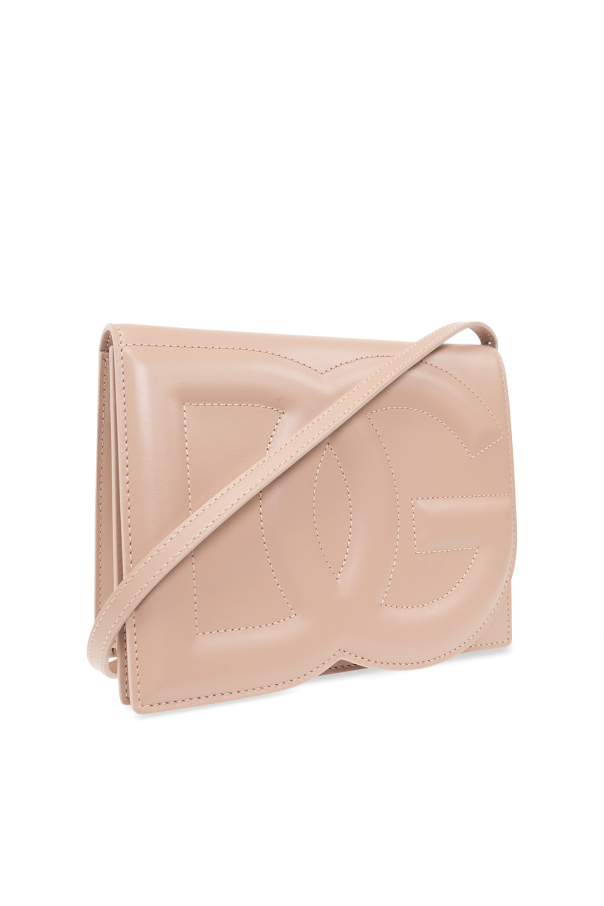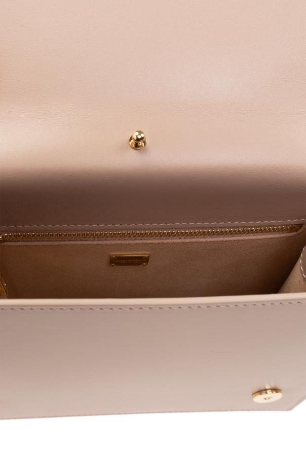 Beige shoulder bag from Dolce & Gabbana. Made of calf leather, this model features magnetic snaps, a logo on the front, detachable and adjustable strap, one internal compartment with one zip pocket and a snap fastened pocket as well as gold-tone metal hardware.