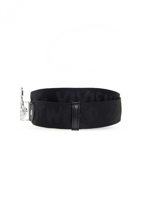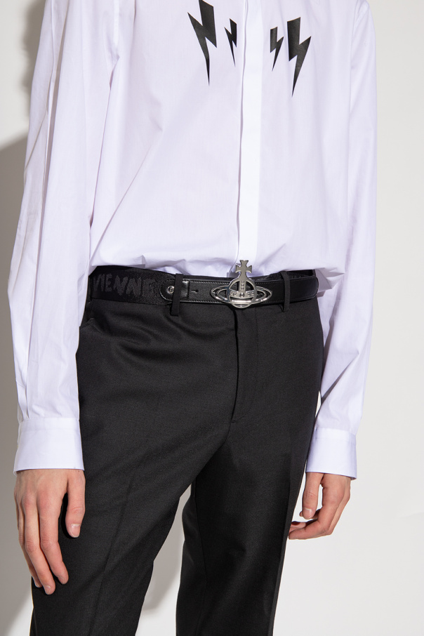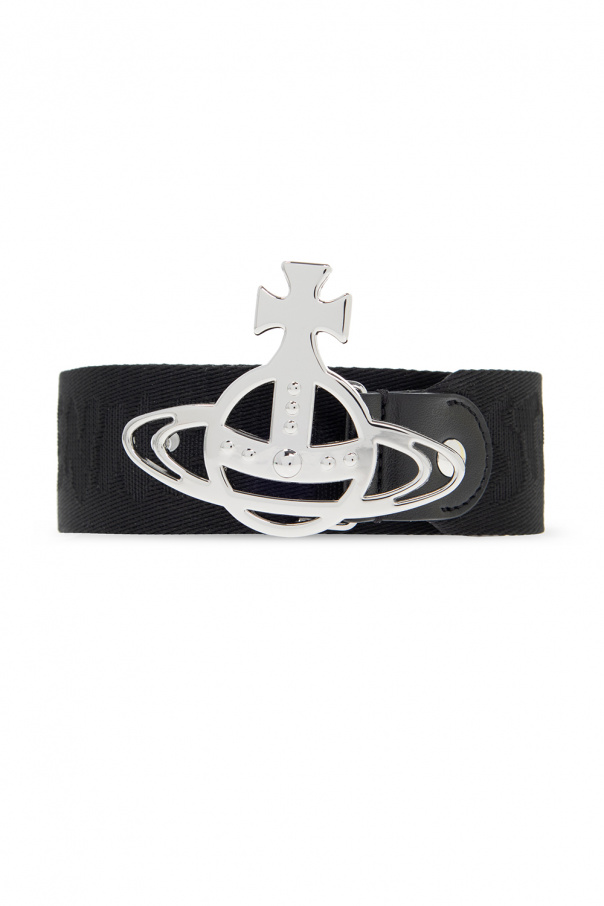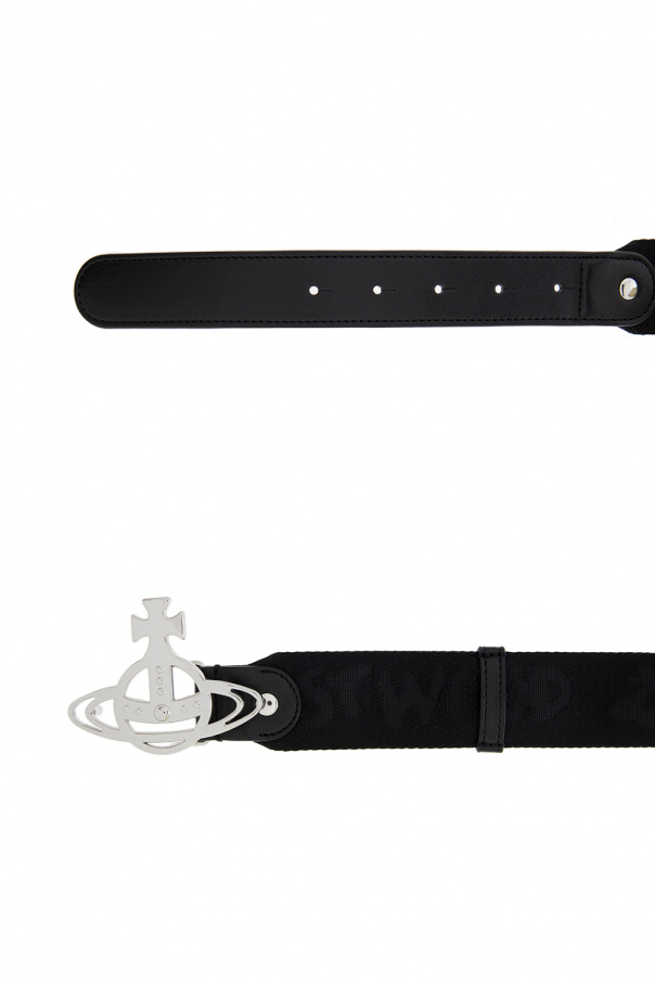 Black belt from Vivienne Westwood. Crafted from fabric and vegan leather, this item features a silver-tone logo buckle.