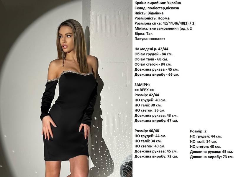 Краща ціна за чудову якість!Неймовірна сукня футляр прикрашена сяючими стразами. Вдалий крій гарно підкреслює зону декольте та привертає погляди на плечі та ключиці. Просто неможливо відірвати погляд.