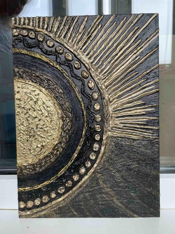 изготовлена из текстурнои пасты,патали и акриловых красок на кортоновой основе