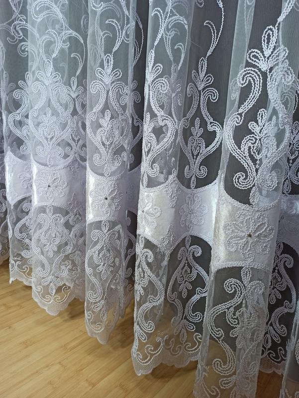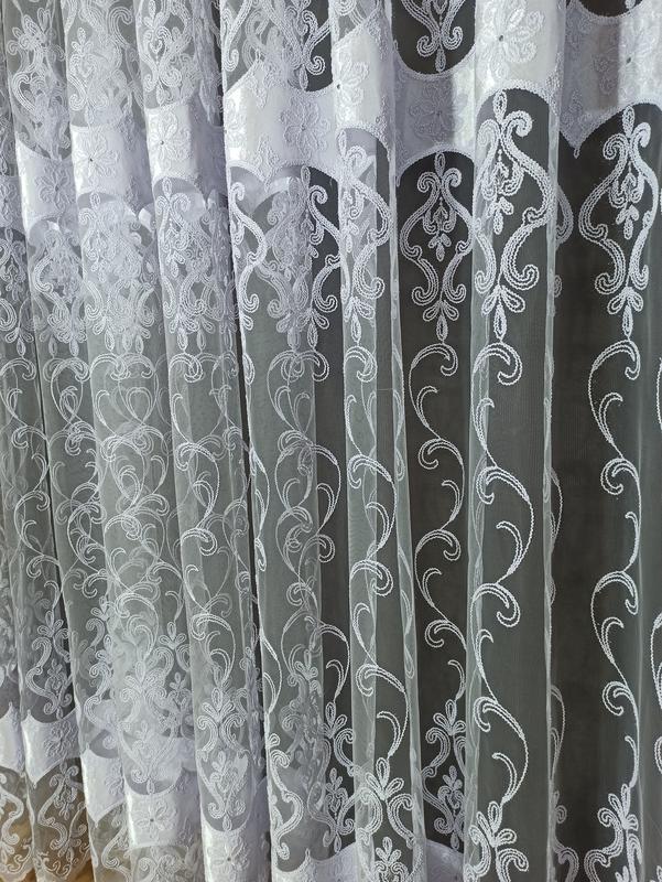 Тюль сетка, легкая воздушная ткань. Благодаря нежной вышивке смотрится на окне современно и изящно.