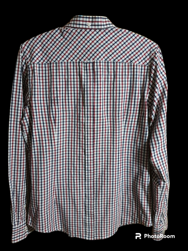 Яркая брендовая рубашка в клетку BEN SHERMAN в идеальном состоянии. Состав ткани: 55% хлопок, 45% полиэстер. Плечи 41,5 см., ширина груди под мышками 48 см., длина внешнего шва рукава 65 см., длина от шва воротника, посередине спины, 69 см.. Торг уместен. Смотрите другие мои объявления. Пишите - договоримся.