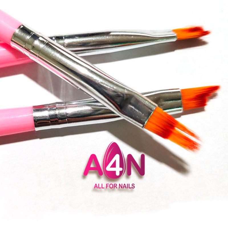 --------Кисть для градиента, омбре – специальный инструмент, имеющий разную длину ворса в рабочей зоне. Такая оригинальная конструкция облегчает процесс создания эффектных цветовых растяжек и плавных переходов. В результате мастеру удается без особых усилий и довольно быстро украсить ноготки красивым дизайном в виде модного оттеночного градиента или омбре в продольном или поперечном варианте.