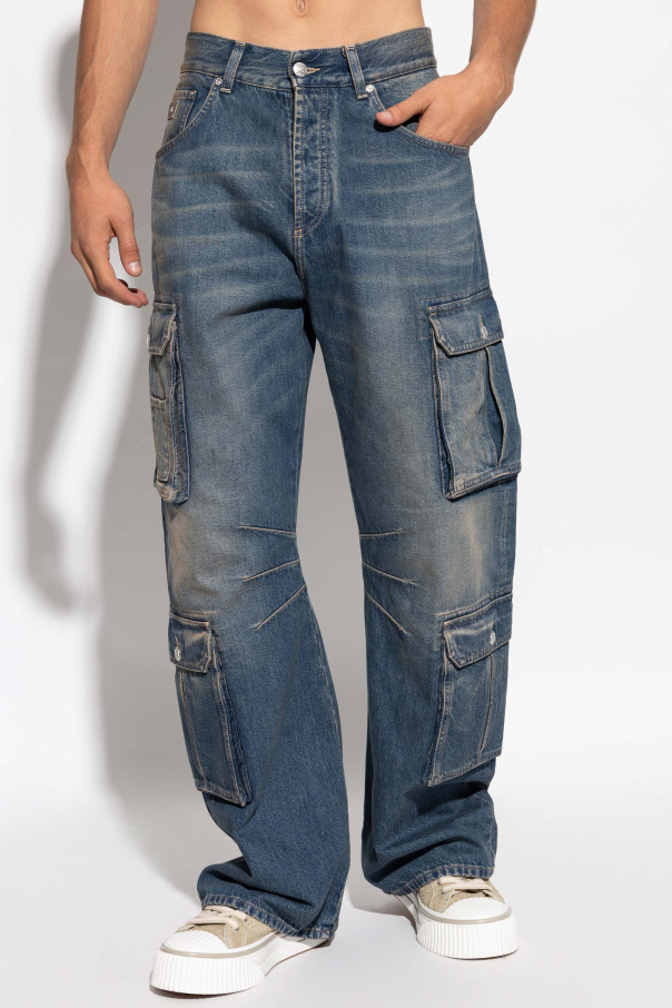 Experience unparalleled sophistication with our luxurious Pocket Jeans by MISBHV. Crafted from premium non-stretch denim, these jeans embody a perfect fusion of comfort and avant-garde fashion. The loose, straight cut ensures ease of movement, while the distinctive blue fabric, adorned with intentional fades and subtle distressing, imparts a trendy, slightly worn-in aesthetic. The standout feature is the plethora of spacious, flap pockets with snap closures that bestow a functional, military-inspired edge to the garment. The front sports traditional pockets alongside a petite coin pocket, complemented by classic back pockets. Attention to detail is paramount, as evidenced by the metal designer logo plaque on the front waistband and the engraved leather brand emblem adorning the rear. The jeans fasten with a sturdy zipper and button, ensuring both security and style. Why Choose This Product? High-quality non-stretch denim for durability and comfort Fashion-forward design with intentional distressing Multiple functional pockets for a unique, utilitarian look Exclusive details such as metal and leather brand logos Versatile for casual and refined styling