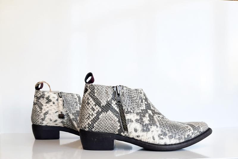 Жіночі ботильйони Gioseppo зі шкіри пітона зі зміїним принтом у чорно-білому ковбойському стилі. Внутрішня блискавка.