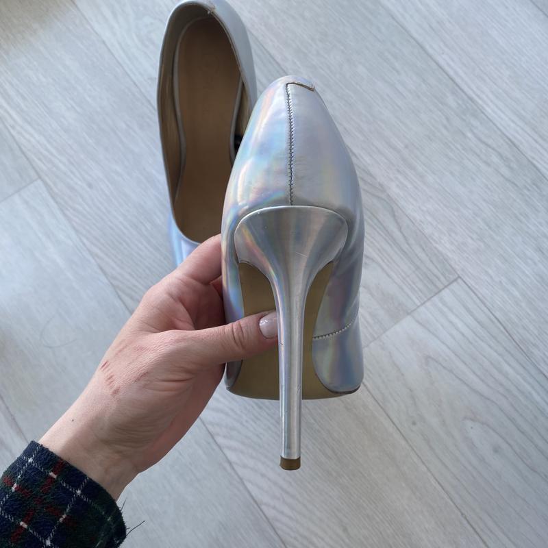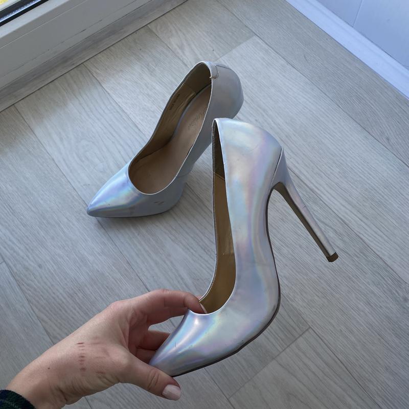 Продам очень красивые и изящные туфли-лодки, на шпильке (12 см), красиво переливающийся на солнце перламутрового цвета. Размер: 40 (стелька 26 см). Состояние: хорошее, есть незначительные потертости, что видно на фото.