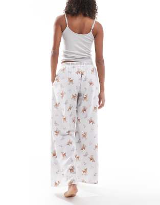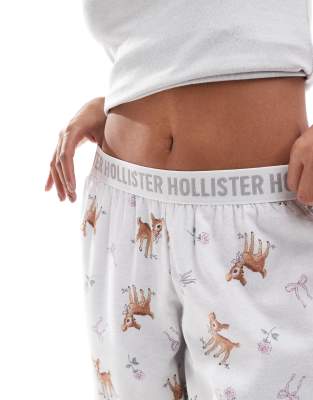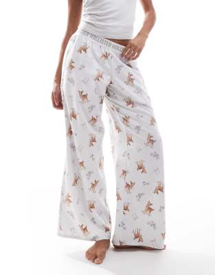 Hollister nightwear logo waistband flannel trouser in beige multi