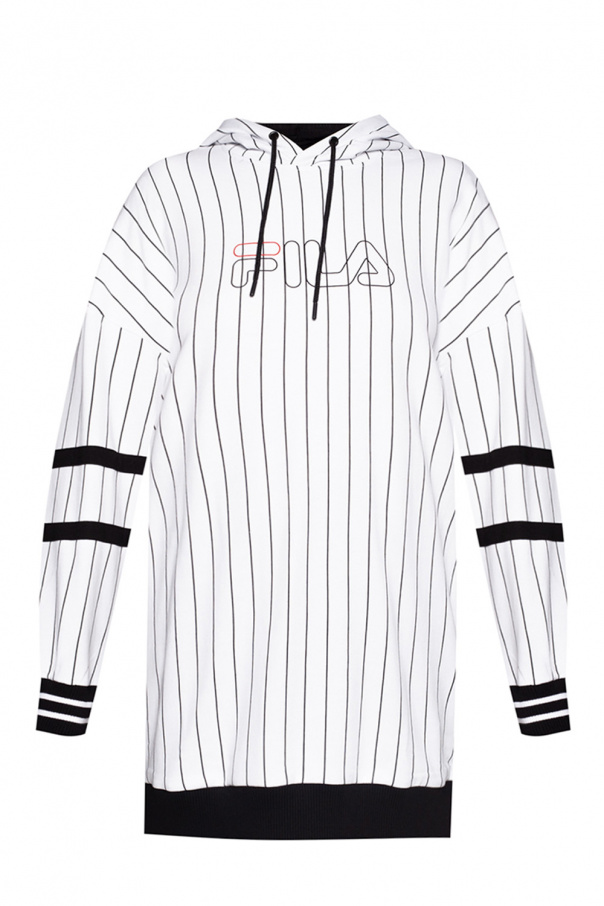 White sweatshirt with a drawcord-adjustable hood from Fila. Crafted from cotton jersey, this hoodie showcases printed vertical stripes, a black and red logo and ribbed trims.