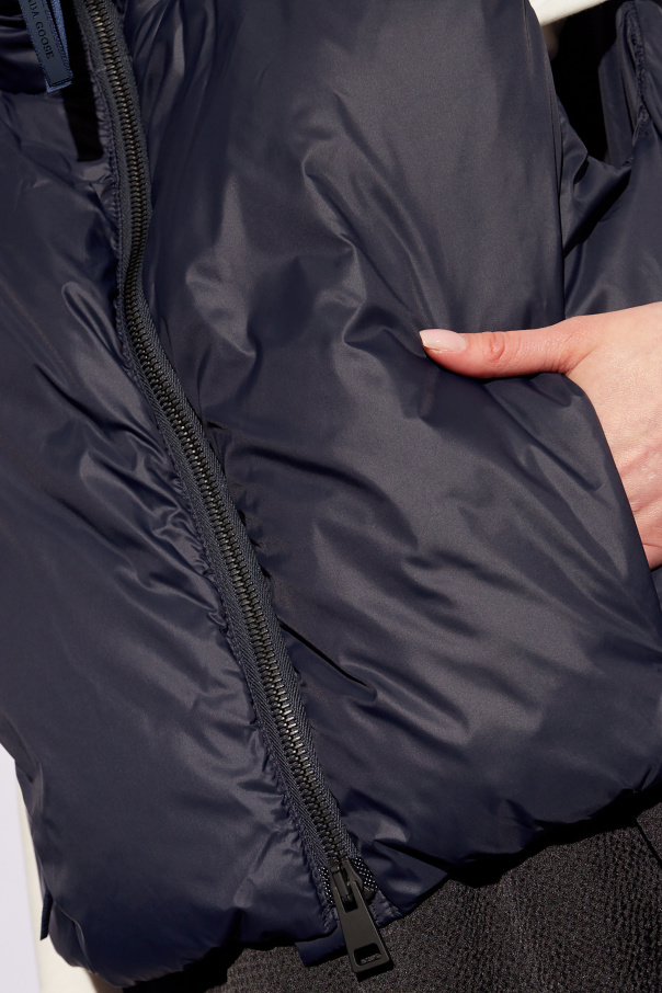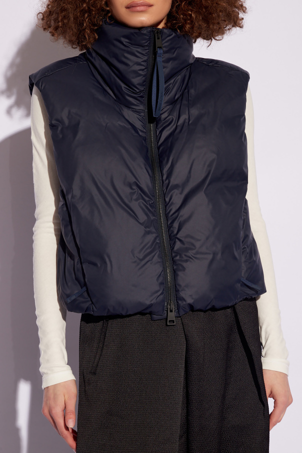 Embrace the essence of luxury and functionality with the 'Spessa' down vest from the renowned Canada Goose. Crafted from Lumina, a soft, ultra-light, and luminous fabric, this piece is not only a testament to high fashion but also a shield against the elements. Its water-resistant and windproof qualities ensure you remain comfortably insulated, whether navigating urban landscapes or exploring the great outdoors. The navy 'Spessa' vest features a high, plush collar and sleeveless design, enhancing mobility while providing substantial warmth, thanks to its premium duck down and feather filling. The vest's sleek, zipper-enclosed front, accented with logo tassels, and its zipper-secured side pockets, amalgamate utility with modern elegance. Despite its functionality, the vest's design remains impeccably minimalist, with a glossy finish that adds a touch of sophistication. Notably absent external branding allows the vest's quality and design to speak for themselves, with the exception of a discreet navy logo patch at the back, serving as a subtle nod to the esteemed Canada Goose legacy. Why Purchase This Product? Exceptional warmth without bulk, accommodating a temperature range of 5°C to -5°C. Elite construction using Lumina fabric for ultimate weather resistance and durability. Sleek, minimalist design with practical features such as high collar and zippered pockets. Impeccable craftsmanship and attention to detail synonymous with Canada Goose.