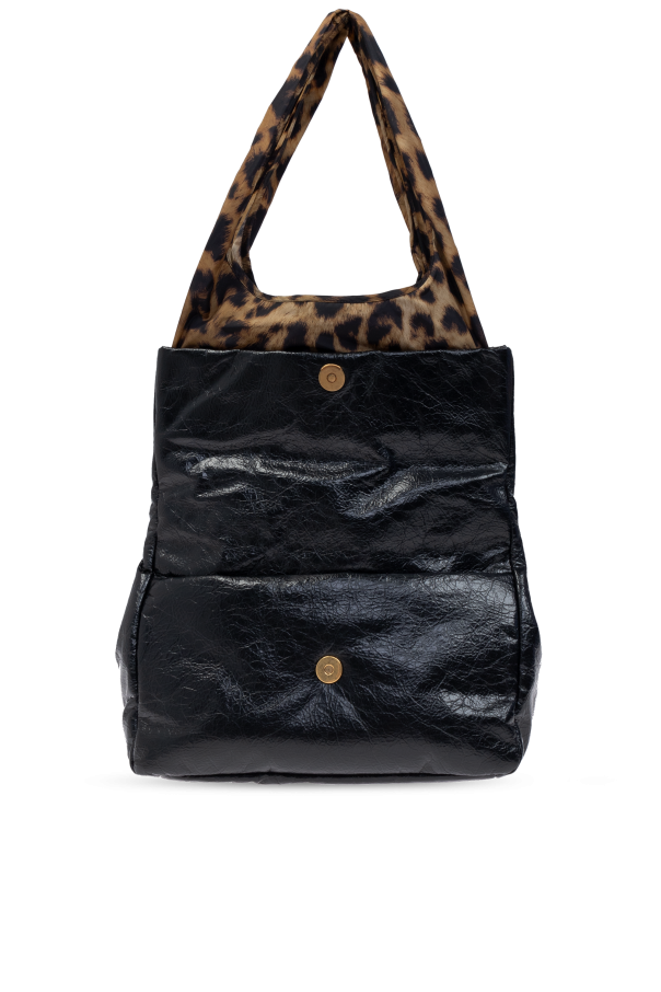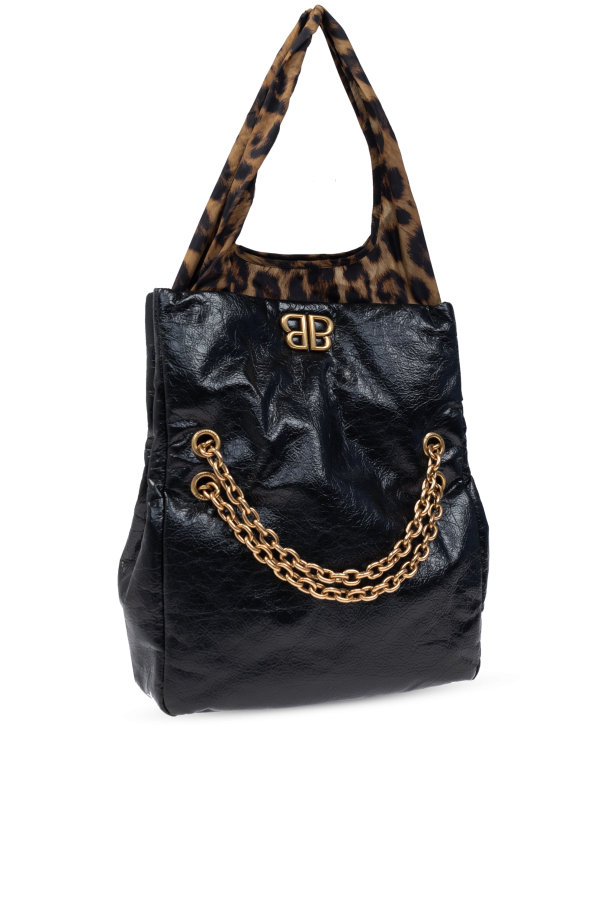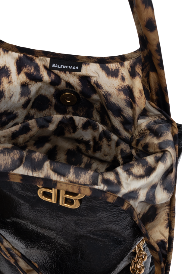 Introducing the "Monaco Small Chain" shoulder bag, a quintessence of luxury and meticulous craftsmanship from the esteemed house of Balenciaga. This accessory stands as a testament to the brand's commitment to quality and innovative design, making it an essential addition to the discerning fashion enthusiast's collection. The bag's rectangular silhouette, with gently rounded edges, unveils a harmonious blend of textures and materials. The upper segment, including the flap, is crafted from a black calf leather that mimics the appearance and feel of genuine leather, while the lower part and the handle feature a captivating animal print, reminiscent of leopard, introducing an element of the exotic. Gold initials of the designer embossed on the flap, along with a gold chain that serves as both a decorative and functional component, accentuate the bag’s elegance. Further enhancing its allure, the bag features a magnetic snap closure that is both discreet and secure, ensuring the safety of your essentials without compromising the bag's aesthetic. The interior, lined with polyamide, includes a main compartment also equipped with a magnetic snap, offering ample space and organization for your belongings. The dominant black hue, punctuated with shades of beige and brown from the animal print, along with the gold-tone hardware, creates a sophisticated palette that is versatile yet striking. Why Purchase This Product? Exclusive design from the renowned designer Balenciaga, ensuring authenticity and high value. Luxurious combination of calf leather and high-quality polyamide for durability and elegance. Unique animal print and gold-tone details for an unmistakable look. Versatile carrying options with the elegant gold chain handle. Secure magnetic snap closure for ease of access while maintaining the sleek profile of the bag.