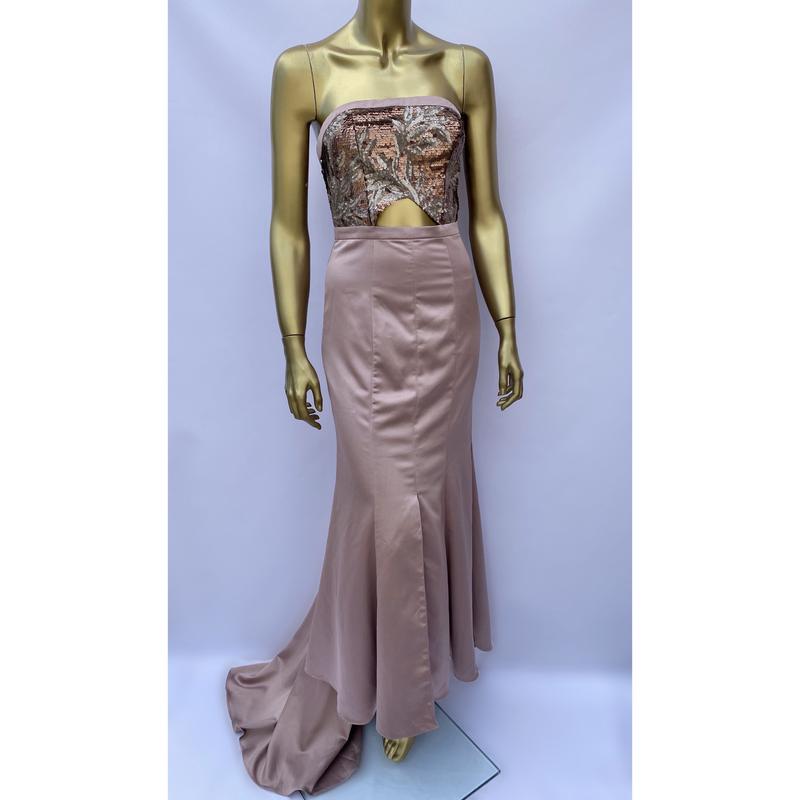 Потрясающее платье бандо True Decadence со шлейфом и разрезом спереди