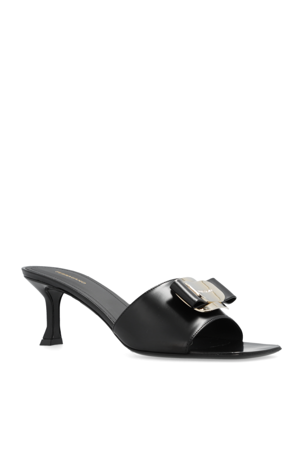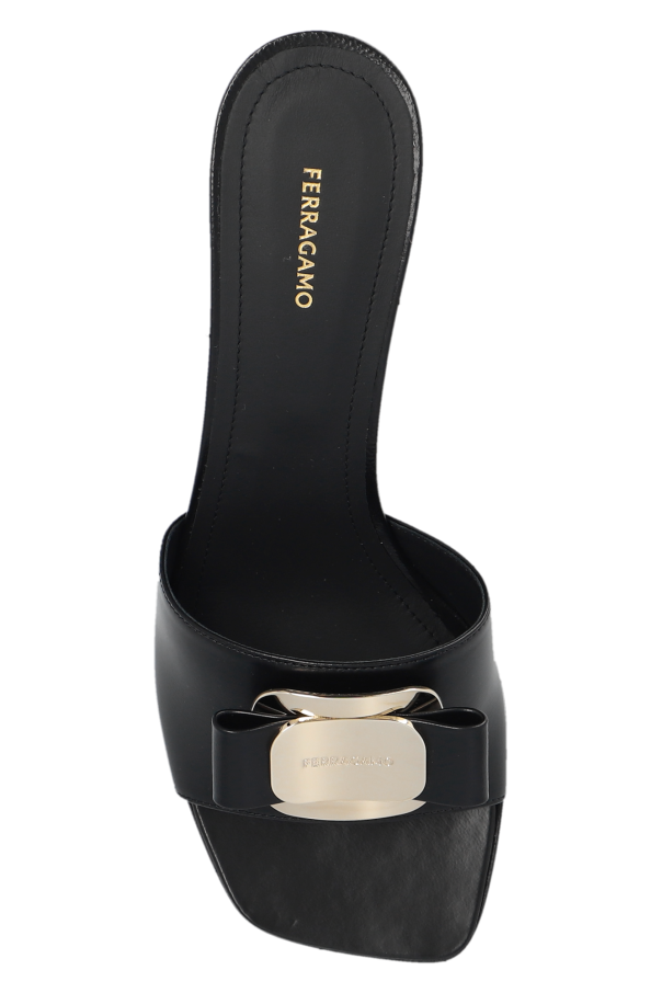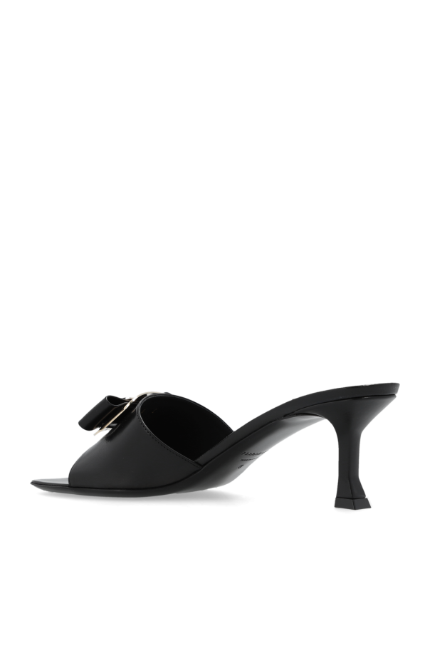 Black ‘Zelie’ heeled mules from FERRAGAMO. Made of leather, this pair features a bow, engraved logo, black leather sole and regular width insole.