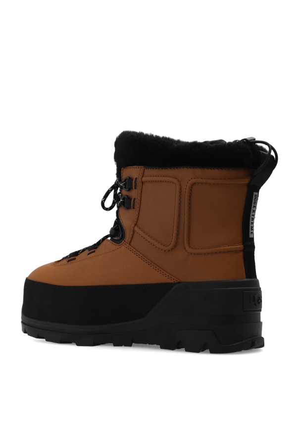 Brown and black ‘Shasta Mid’ snow boots with a logo from UGG. Made of waterproof leather, this lace-up pair features a GORE-TEX membrane, UGGplush™ lining, UGGplush™ insulation, Vibram ® outsole with ICETREK rubber compound and Arctic Grip for traction as well as UGGextreme™ technical features. Temperature range up to -32°C.