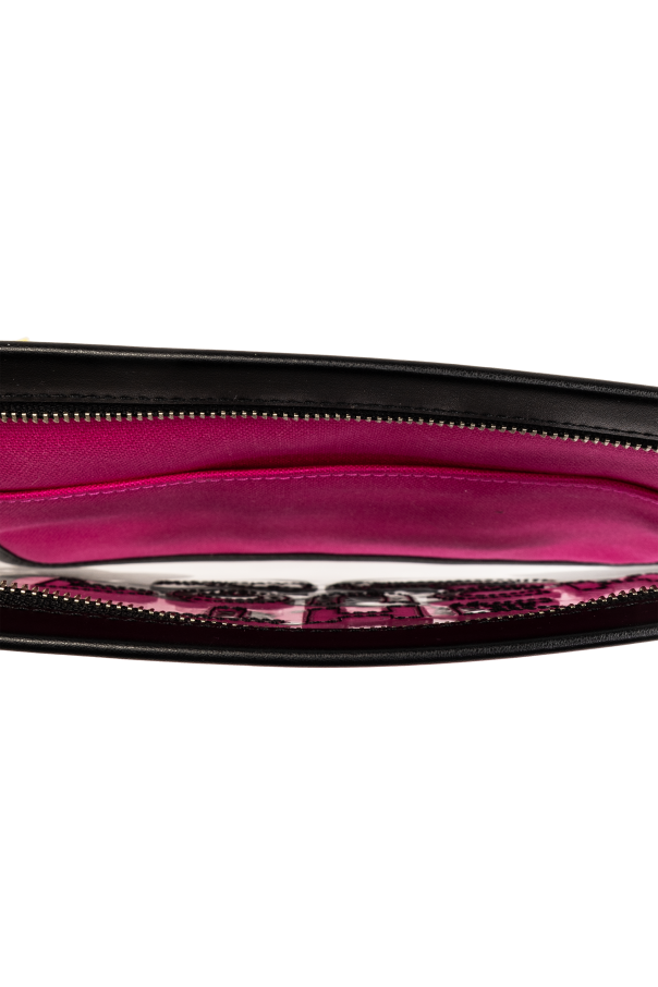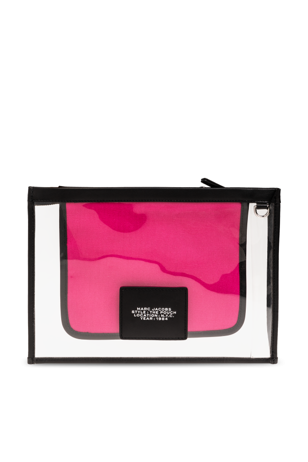 Introducing 'The Pouch' by Marc Jacobs, a statement accessory that embodies the essence of luxury and bold femininity. This exquisite clutch features a vibrant pink hue accented with striking black and white details, creating an eye-catching contrast that is both elegant and contemporary. Crafted from a high-quality, glossy material that mimics the finest leather, and complemented by transparent elements likely made of PVC, 'The Pouch' showcases an impeccable blend of textures that captivates and enchants. Its rectangular silhouette is defined by clean lines and a prominent, embossed logo that proudly announces the Marc Jacobs brand, ensuring its wearer carries not just an accessory, but a piece of art. Functionality meets sophistication with a secure zipper closure, ensuring your essentials are safely contained within its sleek confines. The interior, echoing the external pink palette, is adorned with a smooth lining, featuring a main compartment and a slip pocket for organized storage. An added detachable wrist strap offers versatility, making 'The Pouch' an impeccable choice for both casual and formal occasions. Why Purchase 'The Pouch'? Iconic Design: Instantly recognizable, the embossed Marc Jacobs logo adds a touch of prestige. Luxurious Materials: Crafted from high-quality glossy material and PVC for a unique, sophisticated look. Practical Elegance: Secure zipper closure and an internal slip pocket ensure functionality without compromising style. Versatile Accessory: Comes with a detachable wrist strap, perfect for any occasion.