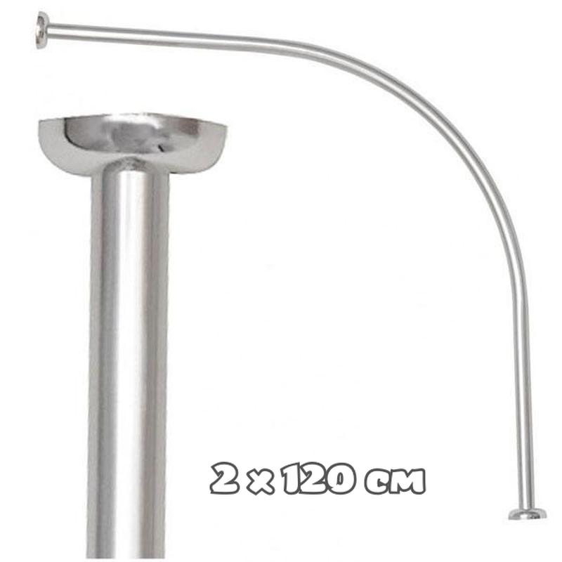 Карниз для ванной дуговой хром, выполнен из 2 труб длинной по 120 см каждая,
