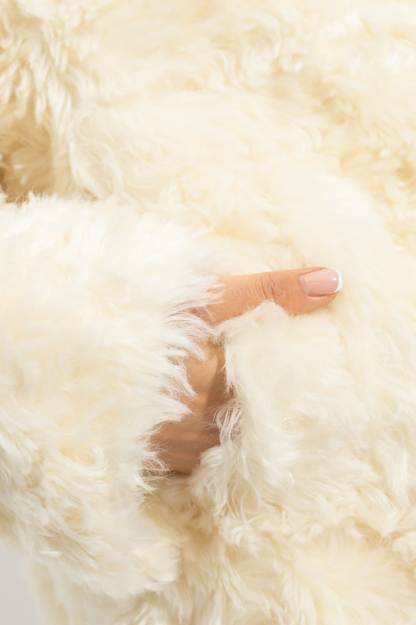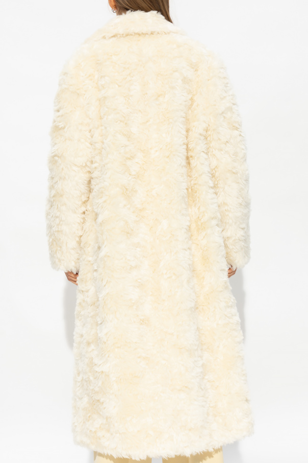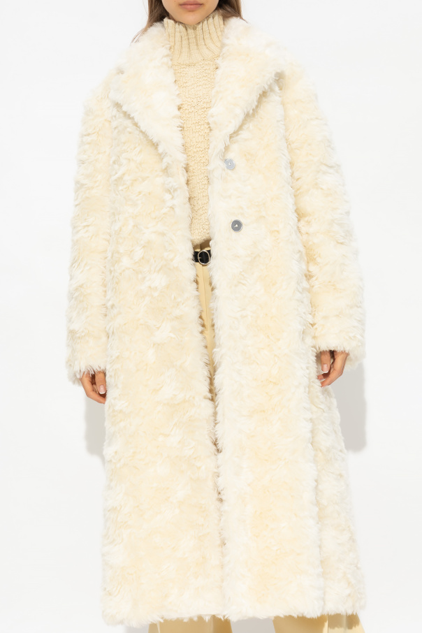 Cream coat from JiL SANDER. Made from a mohair and cotton blend, this long sleeve design features buttons, a V-neck, notch lapels and two slip pockets.