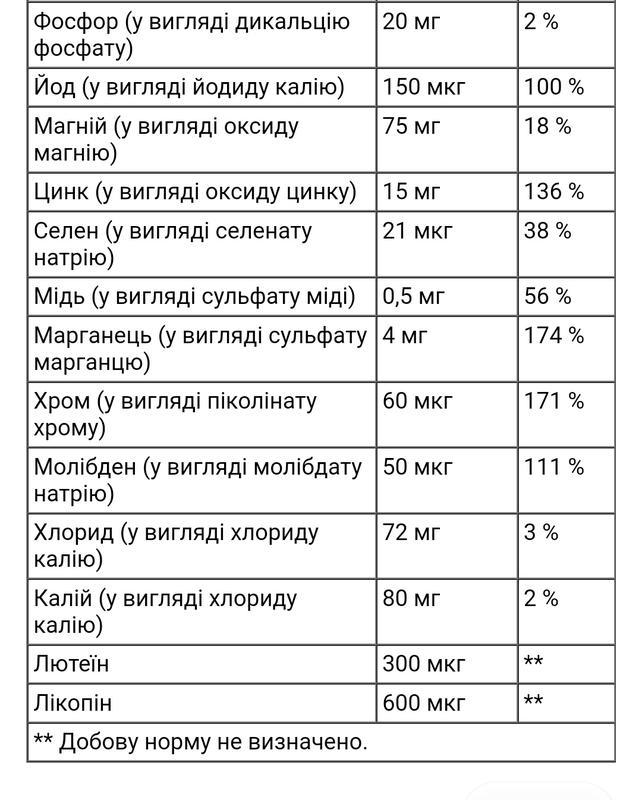 Комплекс містить всі необхідні макро і мікро елементи, що потрібні чоловікам після 50 років. Гарне дозування вітамінів допоможе підтримати здоров'я чоловіків у належному стані та попередити захворювання, викликані дефіцитом тих чи інших елементів у організмі.