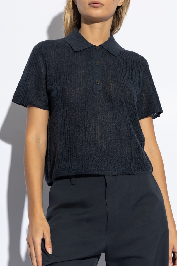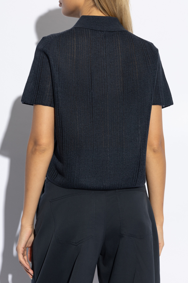Introducing the exquisite Theory Polo Top, a masterpiece from the exclusive collection of the esteemed designer Theory. This top seamlessly merges classic elegance with modern sophistication. Crafted from a luxurious blend of linen, viscose, polyamide, and polyester, this top boasts a textured fabric that exudes an air of refinement. The subtle vertical stripes add a three-dimensional effect, enhancing its depth and allure. Its straight cut and short sleeves provide a timeless silhouette, while the classic polo collar and three-button placket elevate its traditional charm. The large, prominent buttons serve as a tasteful embellishment, adding to its understated elegance. Notably, the absence of visible logos or designer labels emphasizes its discreet and sophisticated design. The rich navy hue of this top is a testament to its versatile and elegant nature, making it a staple for any high-end wardrobe. Perfect for both casual and more formal occasions, this top is the epitome of chic versatility. Why Choose This Product? Premium Materials: Luxurious blend of linen, viscose, polyamide, and polyester. Timeless Design: Classic polo collar with a three-button placket. Elegant Detailing: Subtle vertical stripes and prominent buttons. Versatile Color: Rich navy blue for a sophisticated look. Discreet Elegance: No visible logos or designer labels.