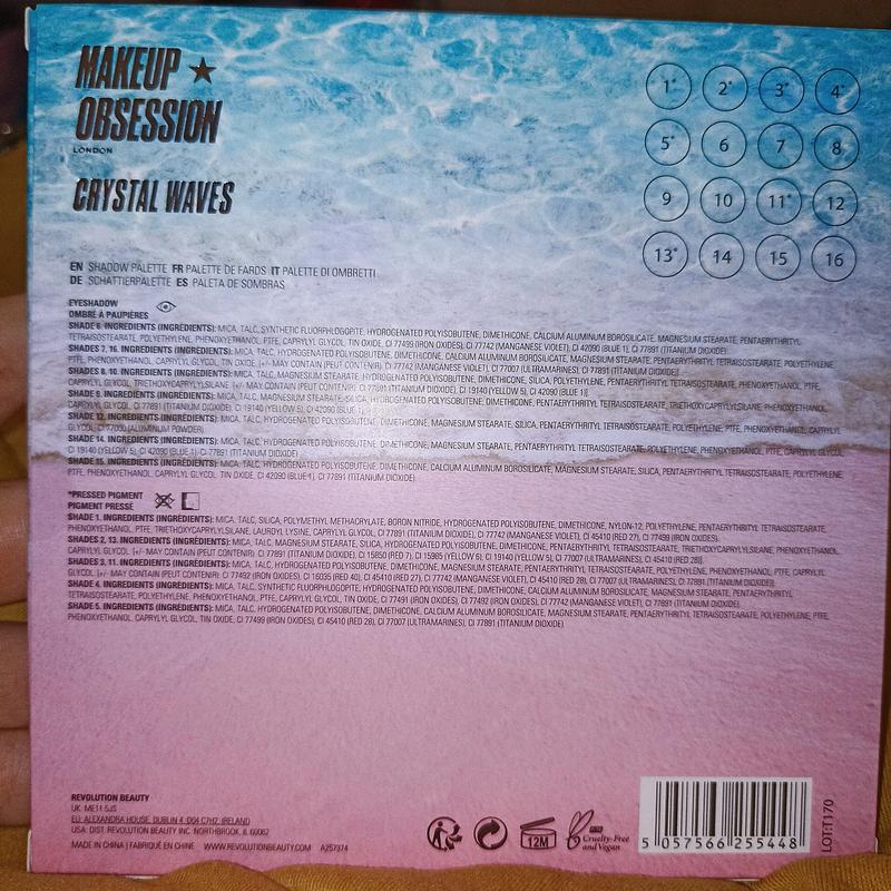 Палетка Crystal waves від британського бренду Мakeup obsession. Дуже гарні відтінки. Гарантована якість та стійкість у цього бренду, висока пігментація. Cruelty free, vegan.