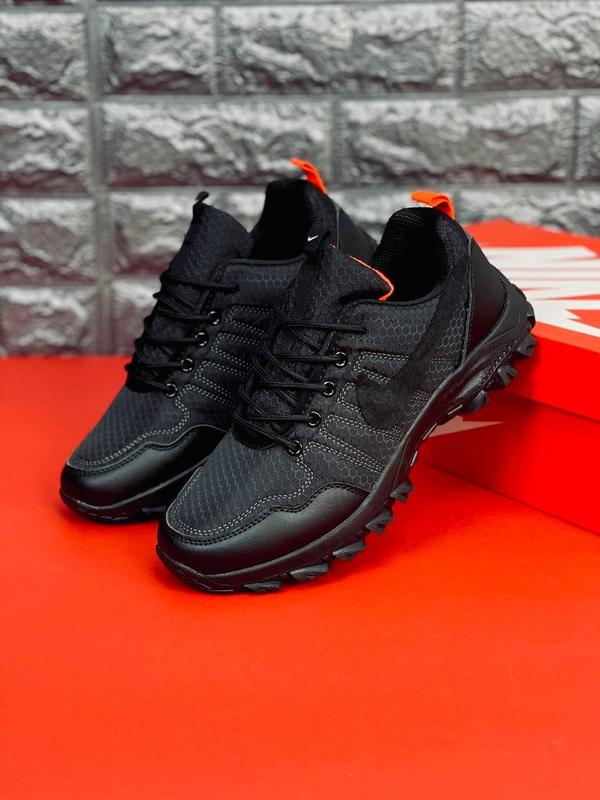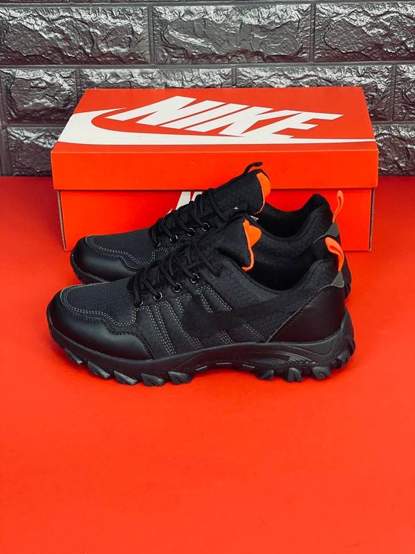 Кроссовки Nike мужские черного цвета с оранжевыми вставками.