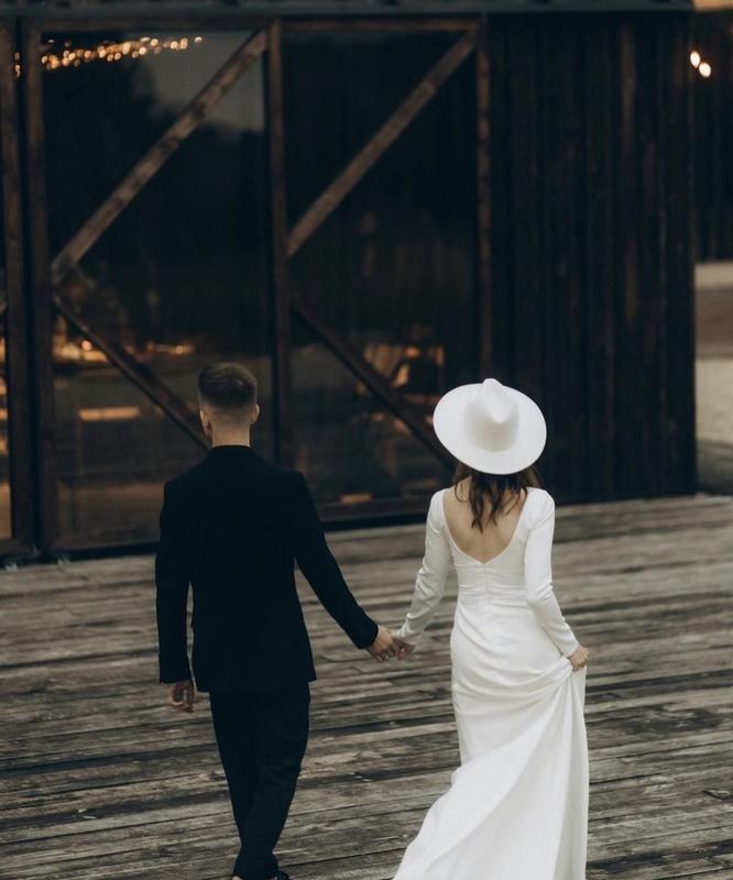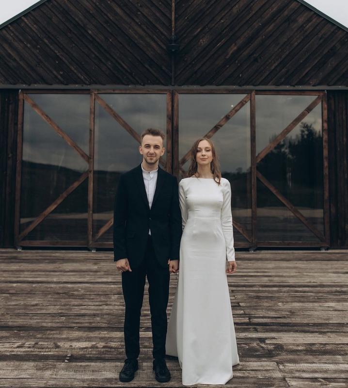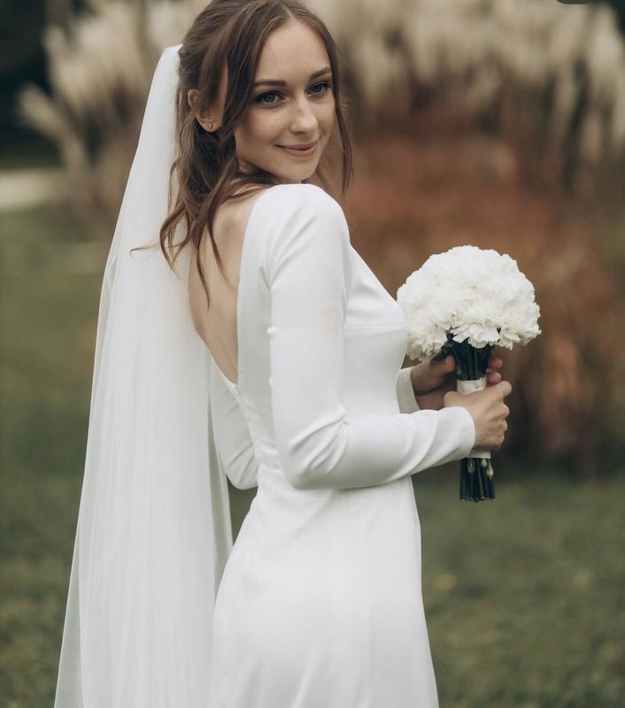 Елегантна мінімалістична весільна сукня із шовку молочного кольору. Сукня ідеально сидить, приталена по бедрам та пряма до низу. Розмір xxs-s.