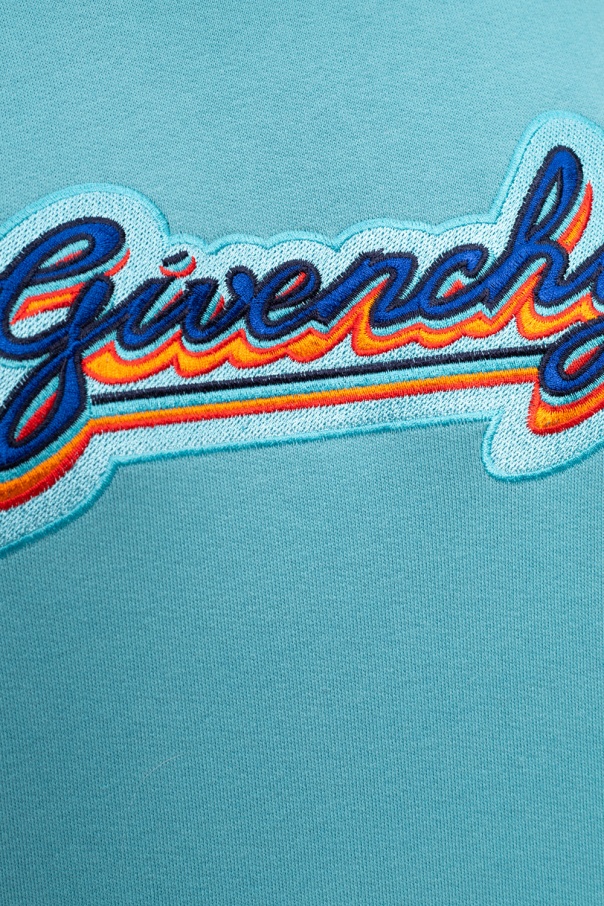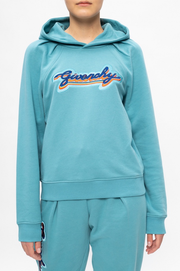 Blue hoodie from Givenchy. Made of cotton, this design is enriched by a colorful logo embroidery and ribbed trims at the hem and cuffs.