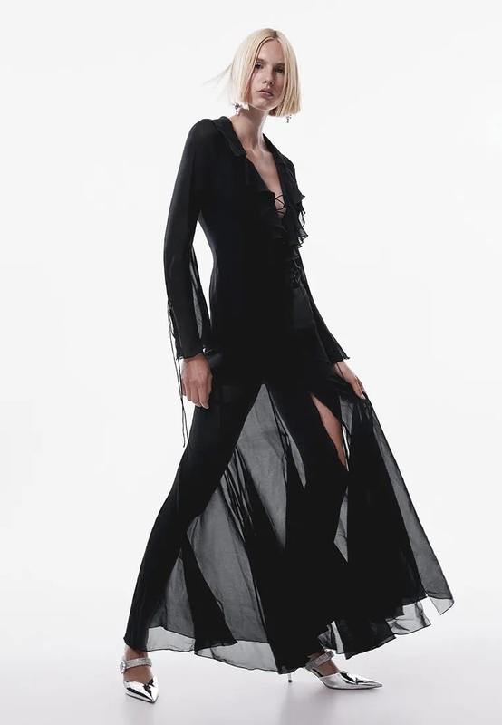 Матеріал:Поліестер , Шифон ,Особливості моделі:На шнурівці ,Довжина рукава:Довгий ,Силует:Вільні ,Особливості:Коктейльне ,Сезон:Зима , Літо , Осінь , Весна ,Принт:Без принту ,Стиль:Вечірній , Романтичний , Святковий ,Декор:Зав'язки ,Стан: НовийКолір:- Чорний