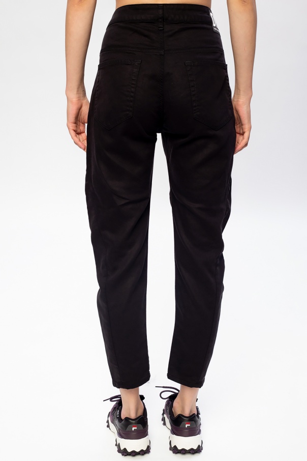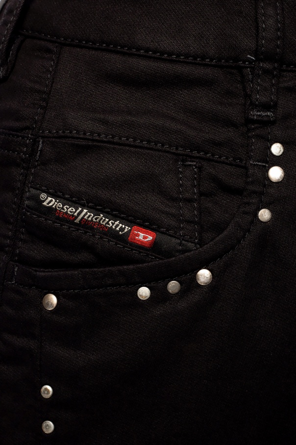 Black ‘D-Fayza Jogg’ jeans from Diesel. Fastened with a button and zip fly, this tapered leg design features metal elements, logo patches, three front pockets and two back pockets.