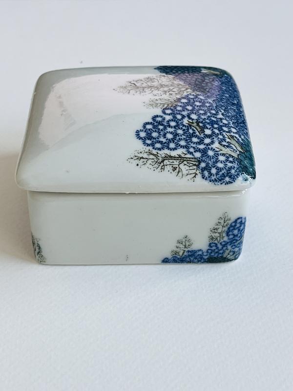 Винтажный керамический ящик для украшений с изображением волшебного леса. 70х гг. Тайвань. Размер 7х7 см. Распылена вручную. В хорошем состоянии без дефектов.
