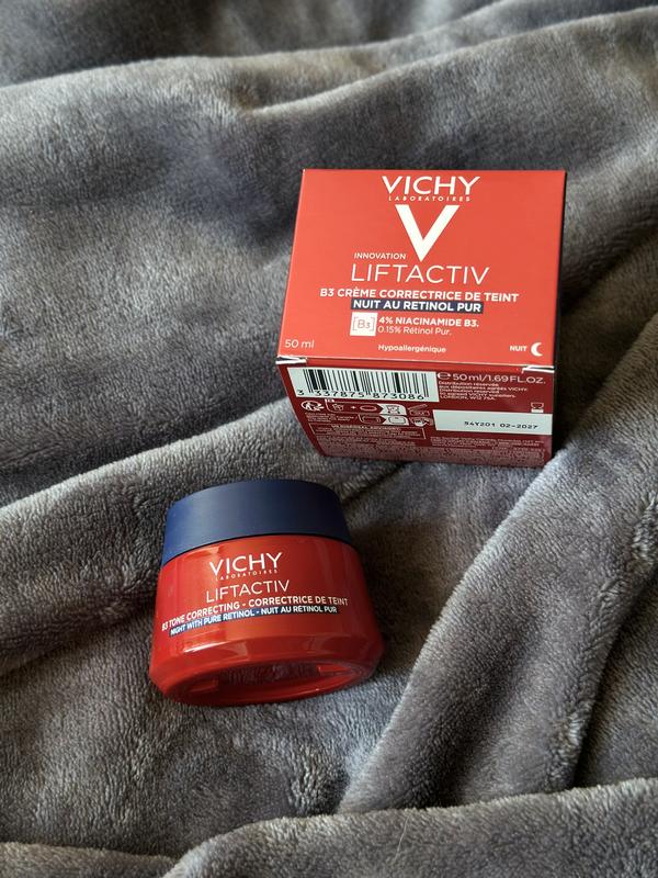 Доказано, что ультрафиолет является одной из основных причин появления темных пятен на коже. Под его воздействием ускоряется синтез меланина, и пигмент неравномерно распределяется из-за чрезмерного накопления. Борьба с этим эффективнее в ночное время, когда запускаются естественные процессы восстановления. Специальный крем Vichy LiftActiv B3 стимулирует обновление клеток, способствует активному осветлению пигментных пятен и выравнивает тон кожи.Особенности ночного антивозрастного крема для коррекции пигментных пятен с ретинолом Vichy LiftActiv B3: