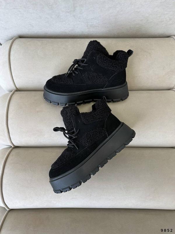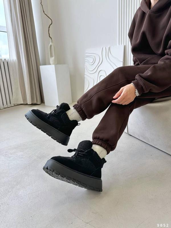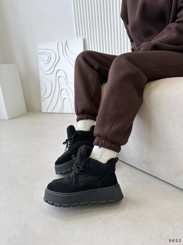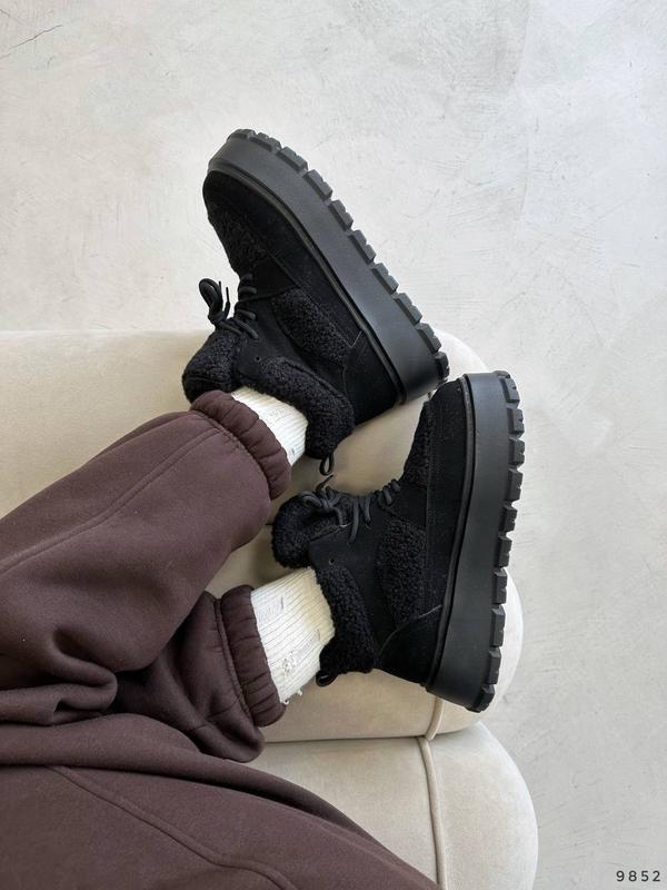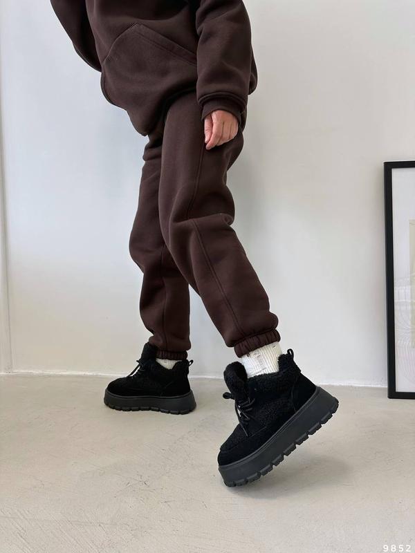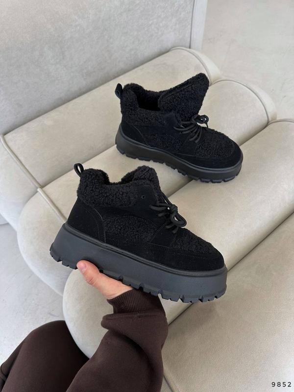 утеплені кросівки на платформі, натуральна замша + тедді, всередині натуральне хутро, платформа 5 см, маломірять на розмір