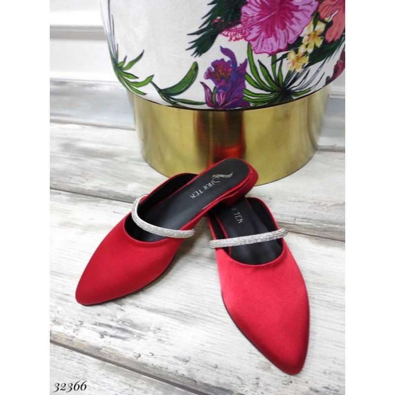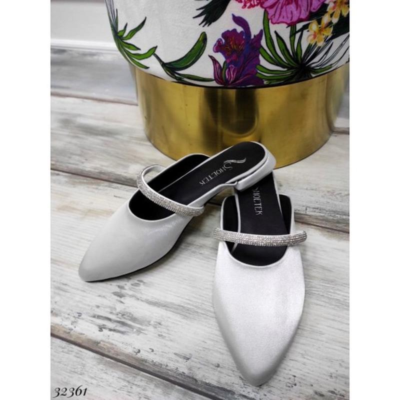 Мюли атласные со стразами размерная сетка 36-23, 37-23.5. 38-24. 39-25 .40-25.5