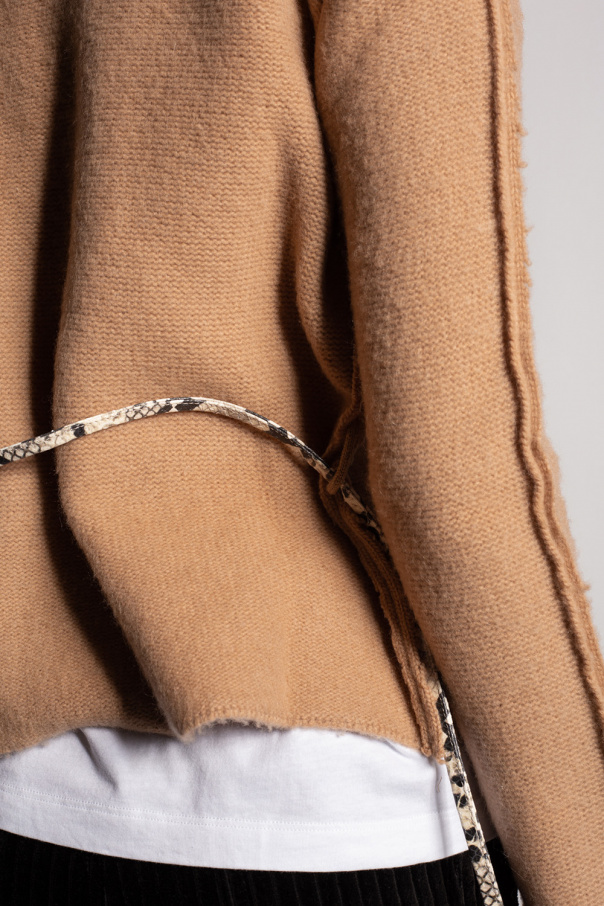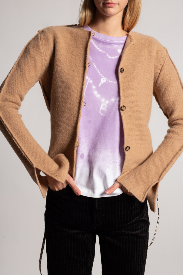 Beige cardigan from Marni. Crafted from a wool and cashmere blend, this round neck design features button fastenings, long sleeves with slits and a black logo embroidered at the back.