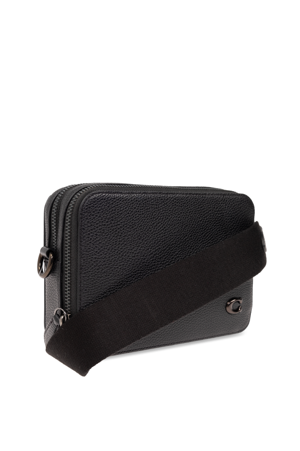 The ‘Charter 19’ Shoulder Bag by Coach epitomizes the quintessence of luxury and practicality. Crafted from premium black grained leather, this exquisite piece boasts a refined rectangular silhouette with subtly rounded corners, embodying sophistication. Its front is adorned with the iconic designer's ‘C’ logo, elegantly integrated into the magnetic flap closure, a testament to the brand's attention to detail. The bag's functionality is enhanced by a robust, adjustable textile strap and a zippered main compartment, ensuring both comfort and security. The interior reveals thoughtfully designed compartments, while the exterior's flat base allows for the bag to stand independently. Metal fittings, harmoniously matching the logo's color, anchor the strap to the bag, further accentuating its exclusive character. Why Purchase This Product? Constructed with 100% genuine leather and a durable inner lining, promising longevity. Features a distinctive design with a magnetic flap closure and designer logo, making a bold fashion statement. Enhanced functionality with a zippered compartment and adjustable strap, catering to practical needs without compromising style. Impeccable craftsmanship and attention to detail, reflecting the luxurious essence of the Coach brand.