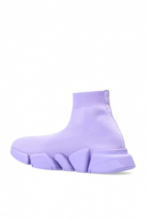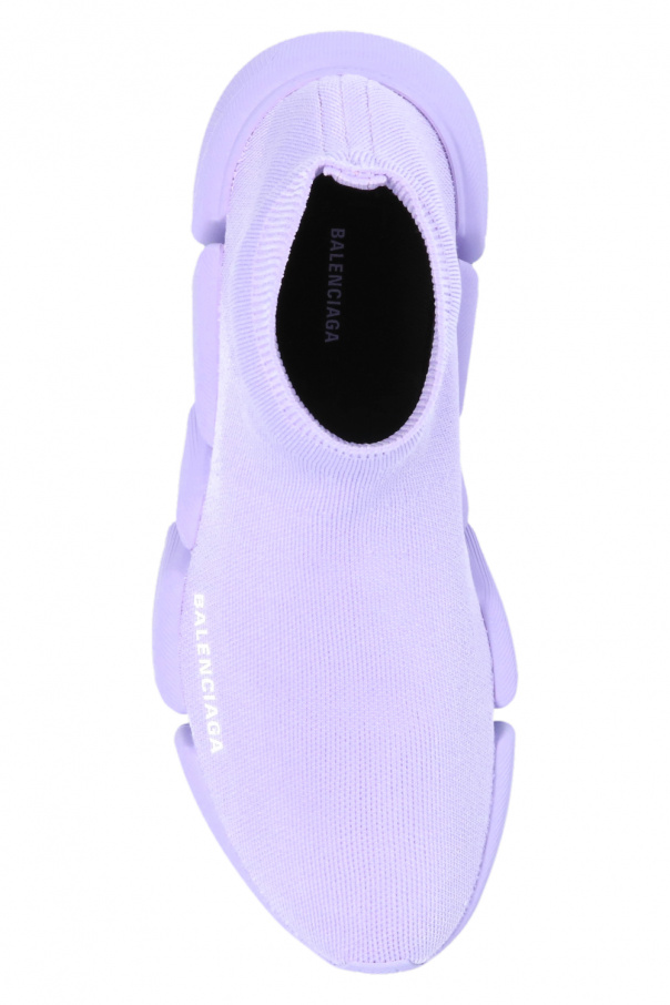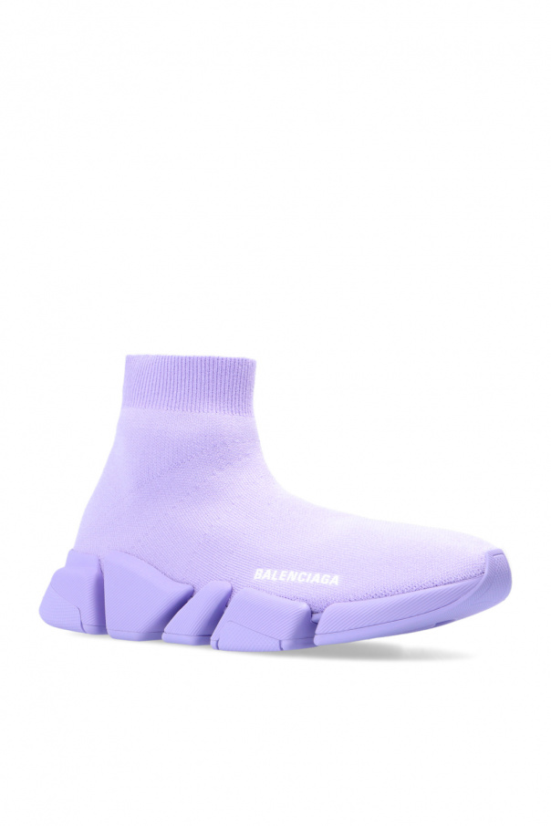 Light purple ‘Speed 2.0 LT’ sock sneakers from Balenciaga. Set on a light purple rubber sole, this pair is decorated with a white logo print.