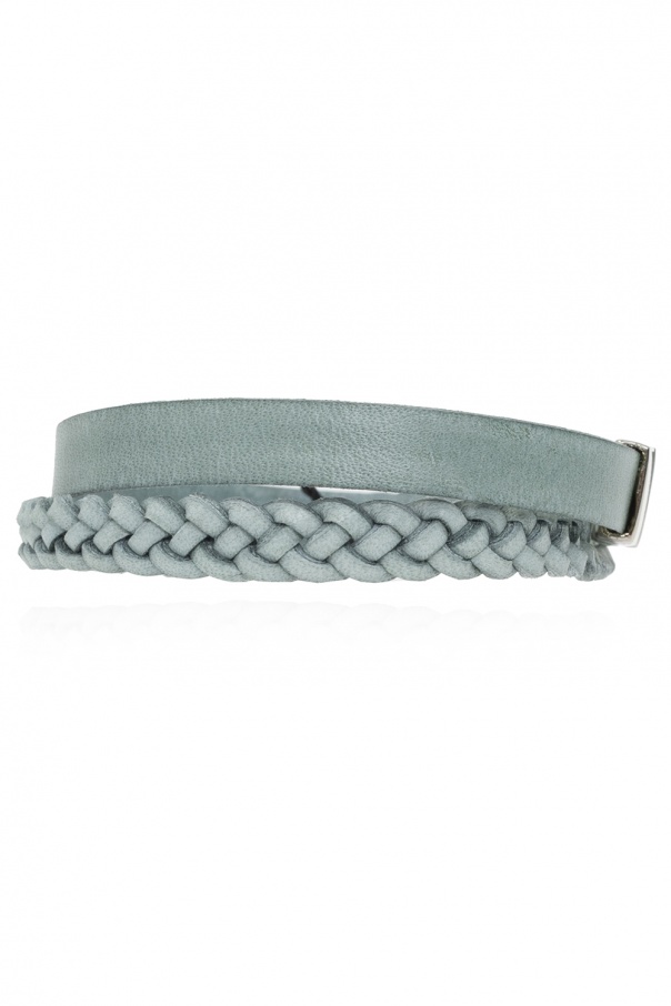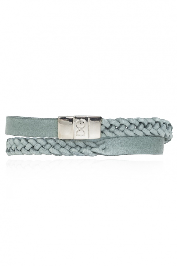 Green bracelet from Dolce & Gabbana. Woven from bovine leather, this item fastens via a silver-tone magnetic snap with the brand's logo.