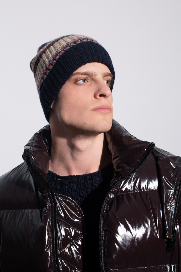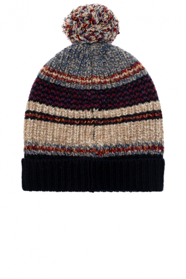 Multicolored striped beanie with a pompom from Nick Fouquet x Federico Curradi. Made of a wool and cashmere blend.