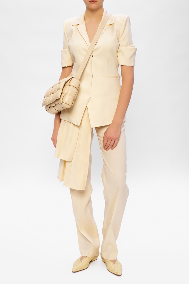 Beige ‘Almond’ ballet flats from Bottega Veneta. Crafted from lamb leather, this pair is set on a brown leather sole and showcases the label's iconic ‘Intrecciato’ weave,