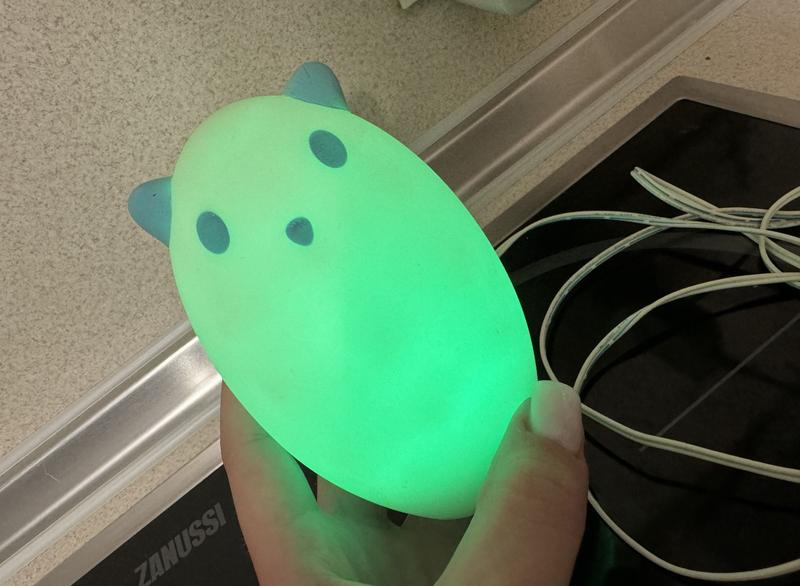Светильник меняет цвет. Чтобы зафиксировать один цвет, нажмите на корпус светильника сверху.