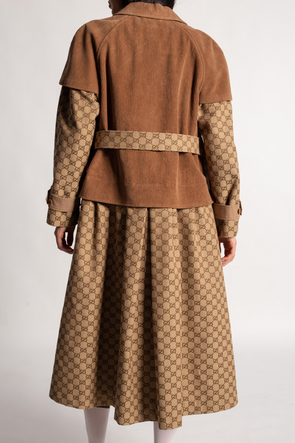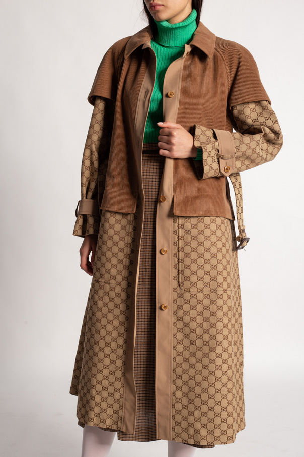 Brown coat from Gucci. Made of cotton, this garment features button fastenings, embroidered logo pattern and two flap pockets.