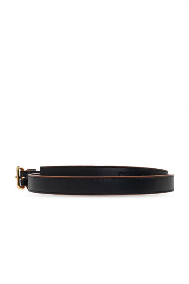 Black and brown belt from Marni. Made of leather this item features a metal buckle and a metal logo plaque.
