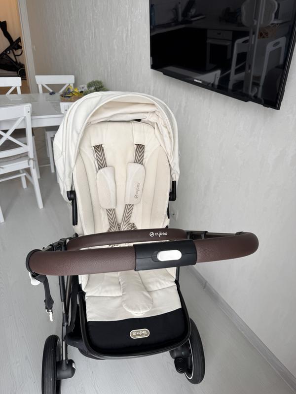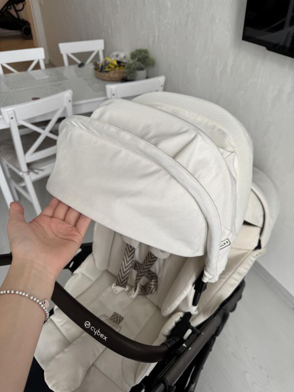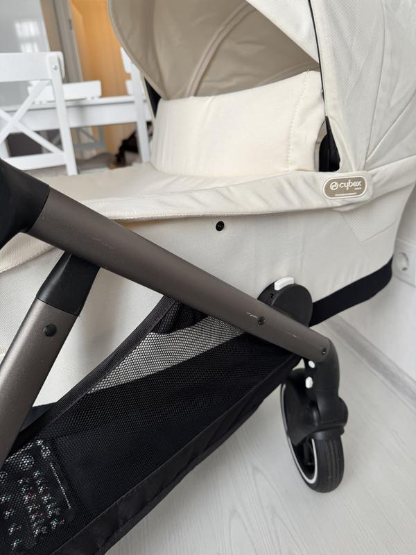 Тележка Cybex Gazelle, которая была в использовании 3 месяца, для детей погодок. Комплектация: шасси, люлька, два прогулочных блока, дождевик на люльку. Второй совершенно новый прогулочный блок и корзина для вещей. На весь колясок есть гарантийная книжка, с которой вы сможете обратиться к сервису Сайбекс на протяжении 2 лет. Никаких пятен или повреждений текстиля нет, ткань хорошо моется (губкой протирается). Есть коробка от коляски, упакованный прогулочный блок тоже белый. Из недостатков: несколько потертостей на раме.