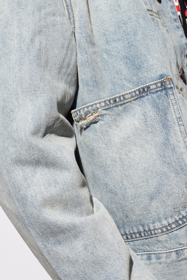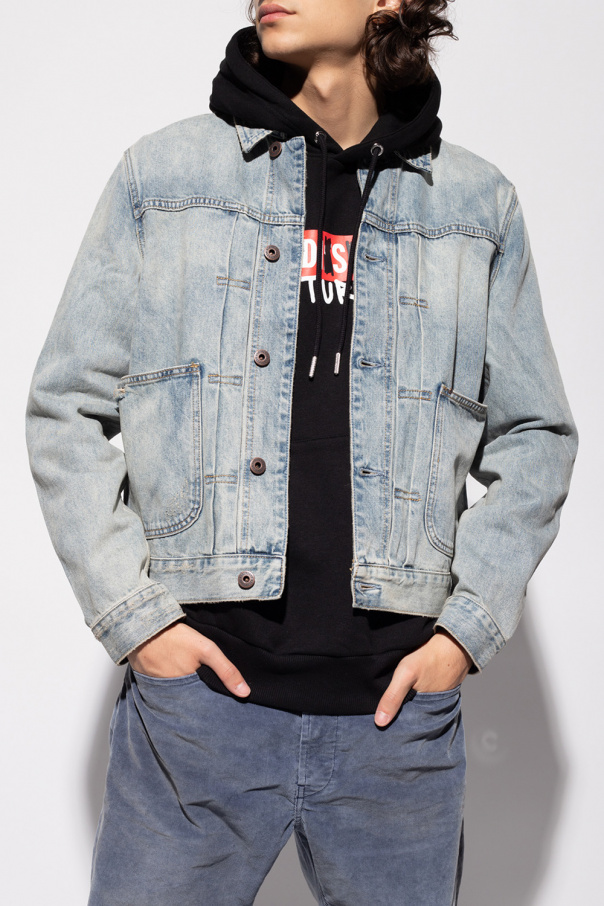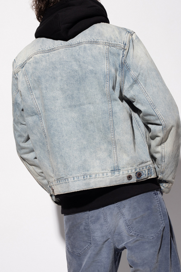 Light blue ‘Malham’ denim jacket from AllSaints. Crafted from recycled cotton, this style features button fastenings and two frontal pockets.