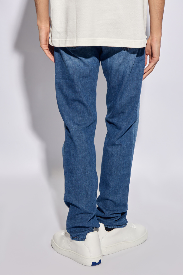 Dark blue straight legs from Brioni. Falling with straight legs, this pair features a zip fly with a button and classic five-slip pockets.